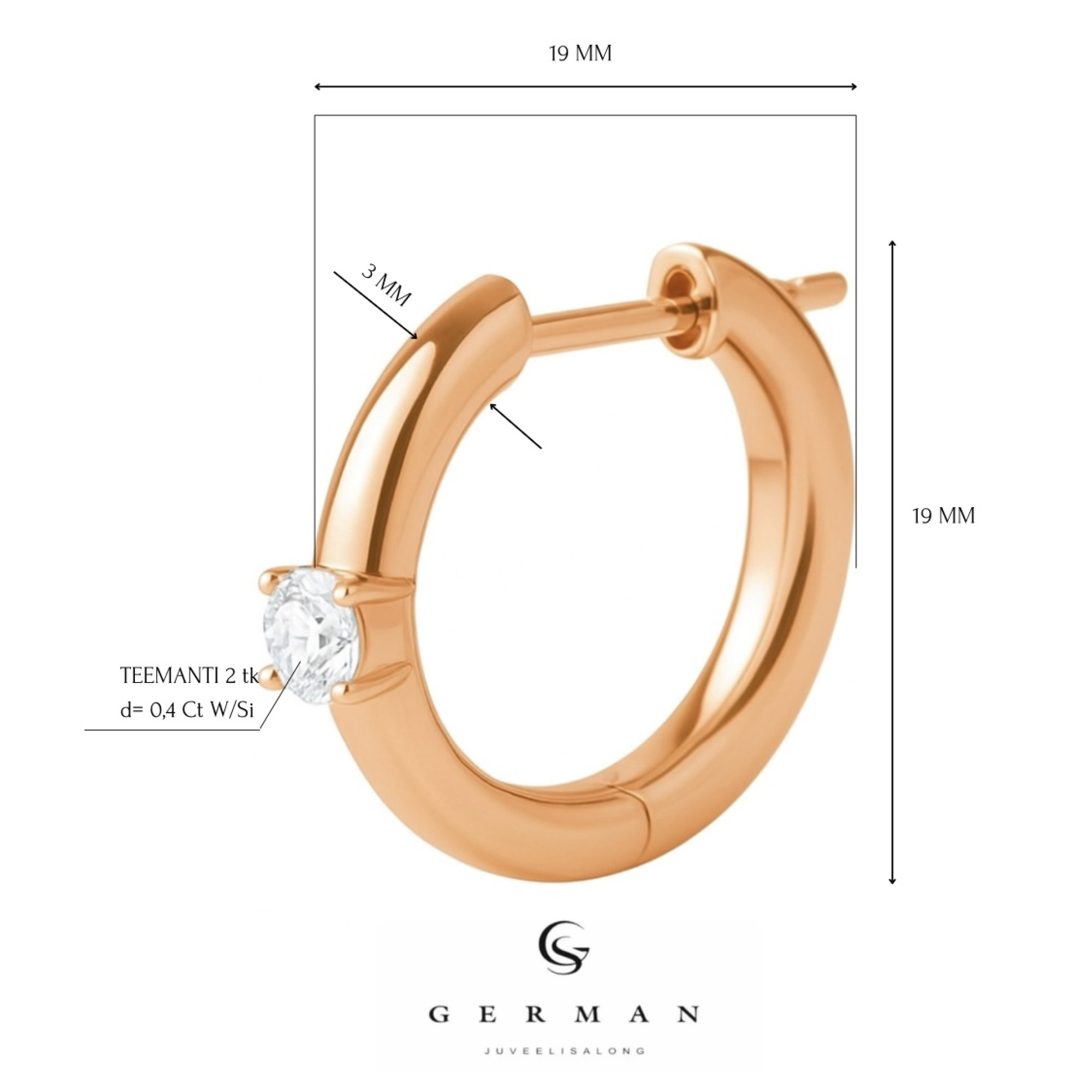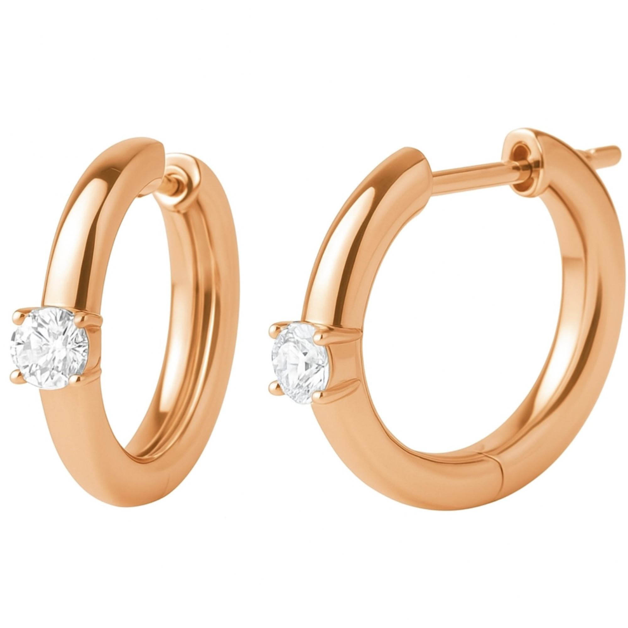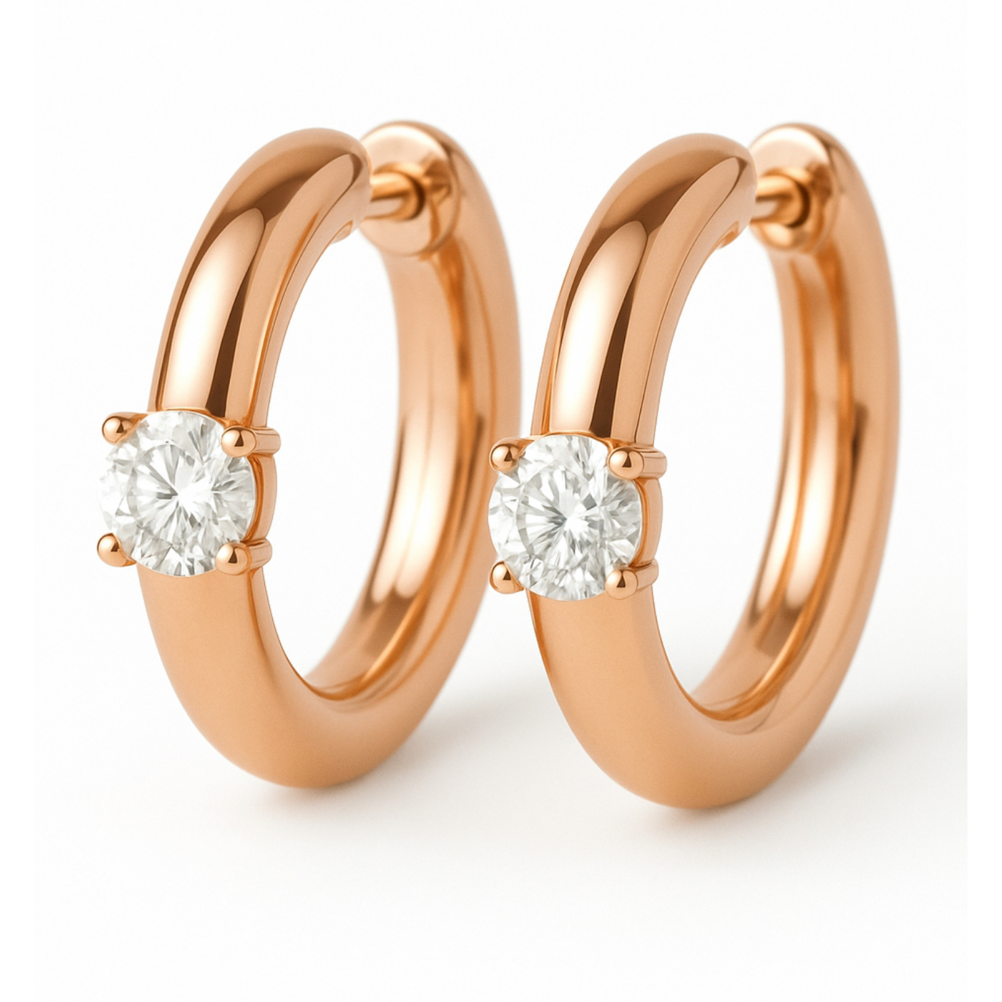 These 14k rose gold earrings combine sophisticated style and luxury. Each piece features a diamond in a classic setting, totaling 0.4 carats. The warm tone of the gold highlights the sparkle of the diamonds, creating a harmony of form and light. A perfect gift or addition to a jewelry collection.