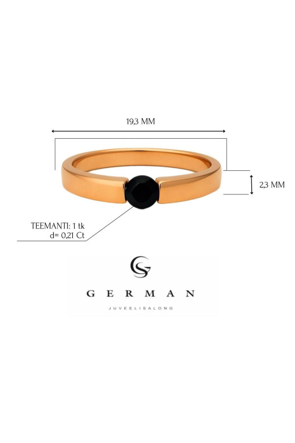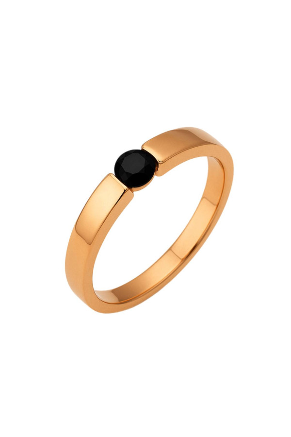 This rose gold ring with a 0.21 carat black diamond is the perfect choice for those looking for something unusual. The dark stone draws attention with its deep color and contrast with the warm tone of the metal. The classic setting highlights the diamond's shape and brilliance. This piece is perfect for both a special occasion and a statement everyday look.
