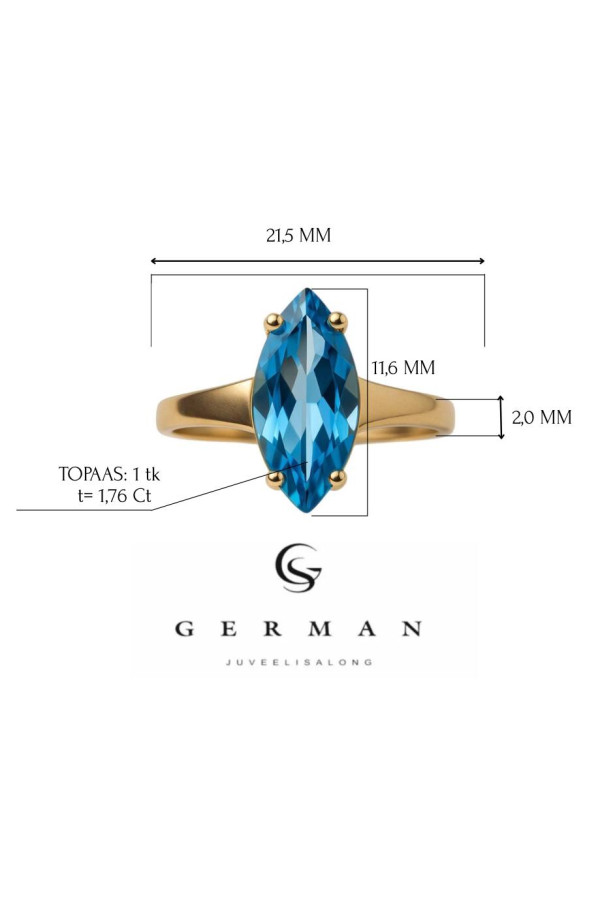 See roosakuldne sormus on kaunistatud kirkalt sinise 1.76 Ct topaasiga. Klassikaline kinnitus rohutab kivi sara ja puhtust. Roosakulla soe toon loob taiusliku kontrasti topaasi jaheda helgiga. Idealne ehe, kui soovid lisada oma valimusele varvi ja isikupara.