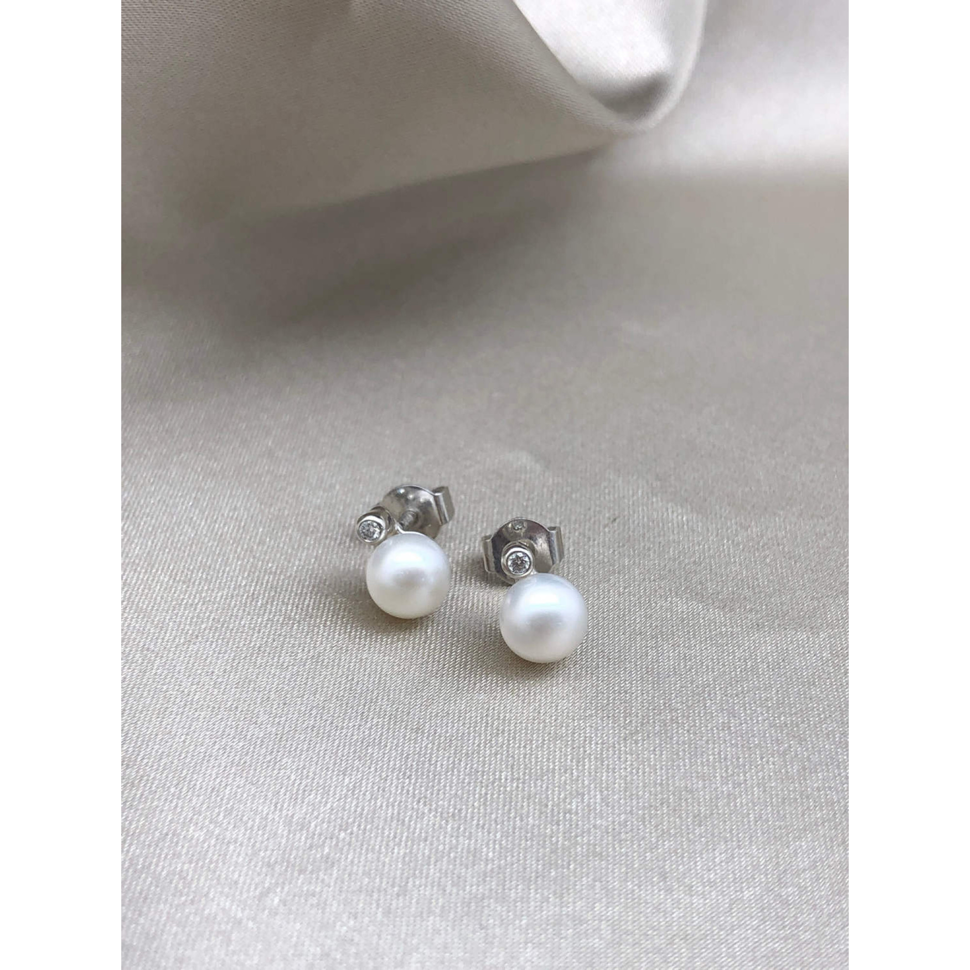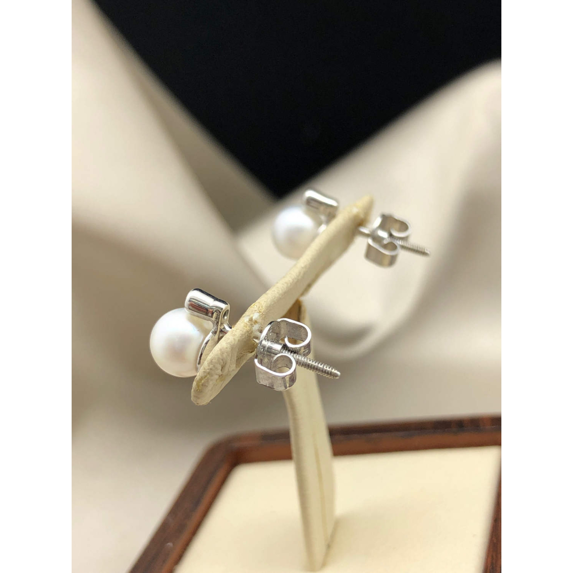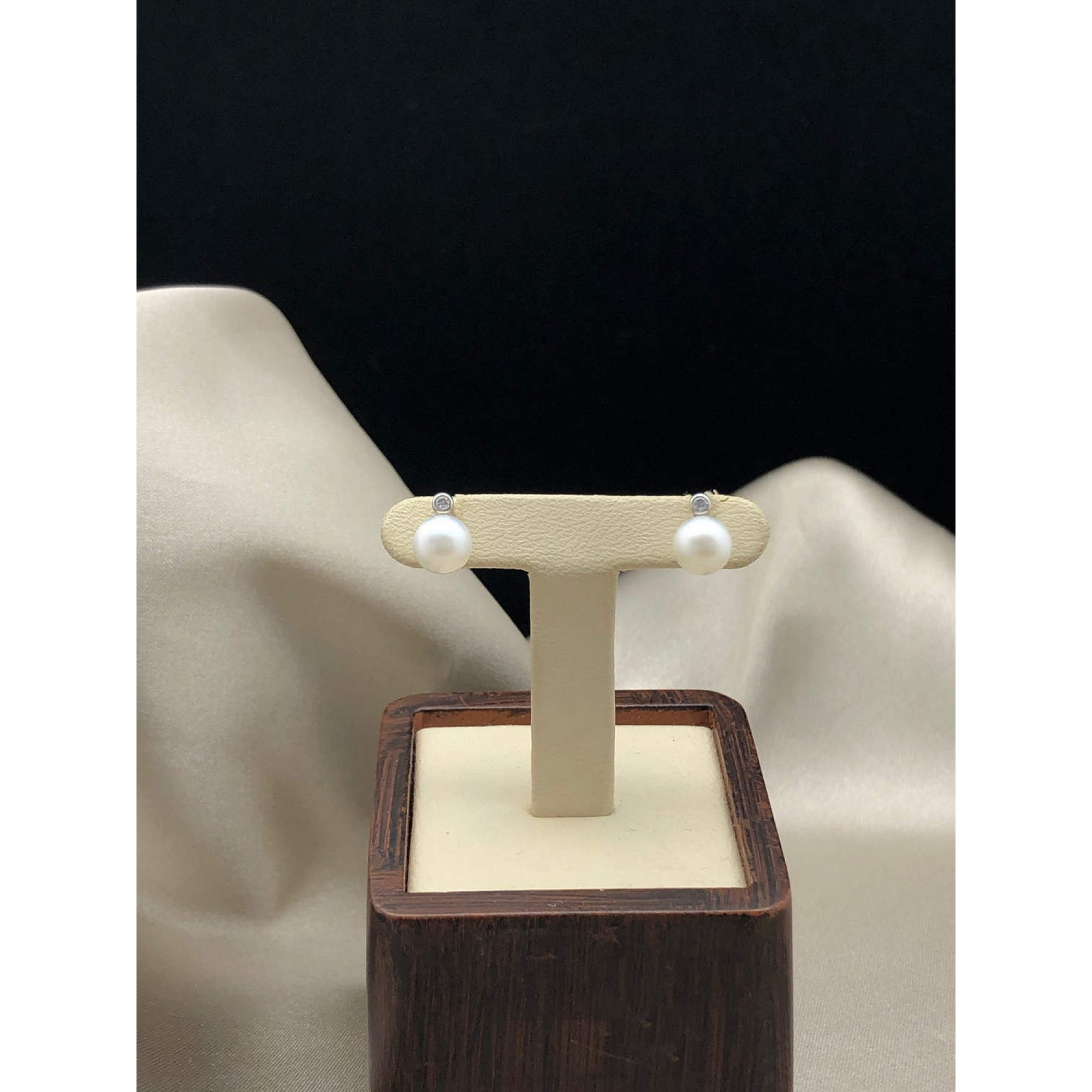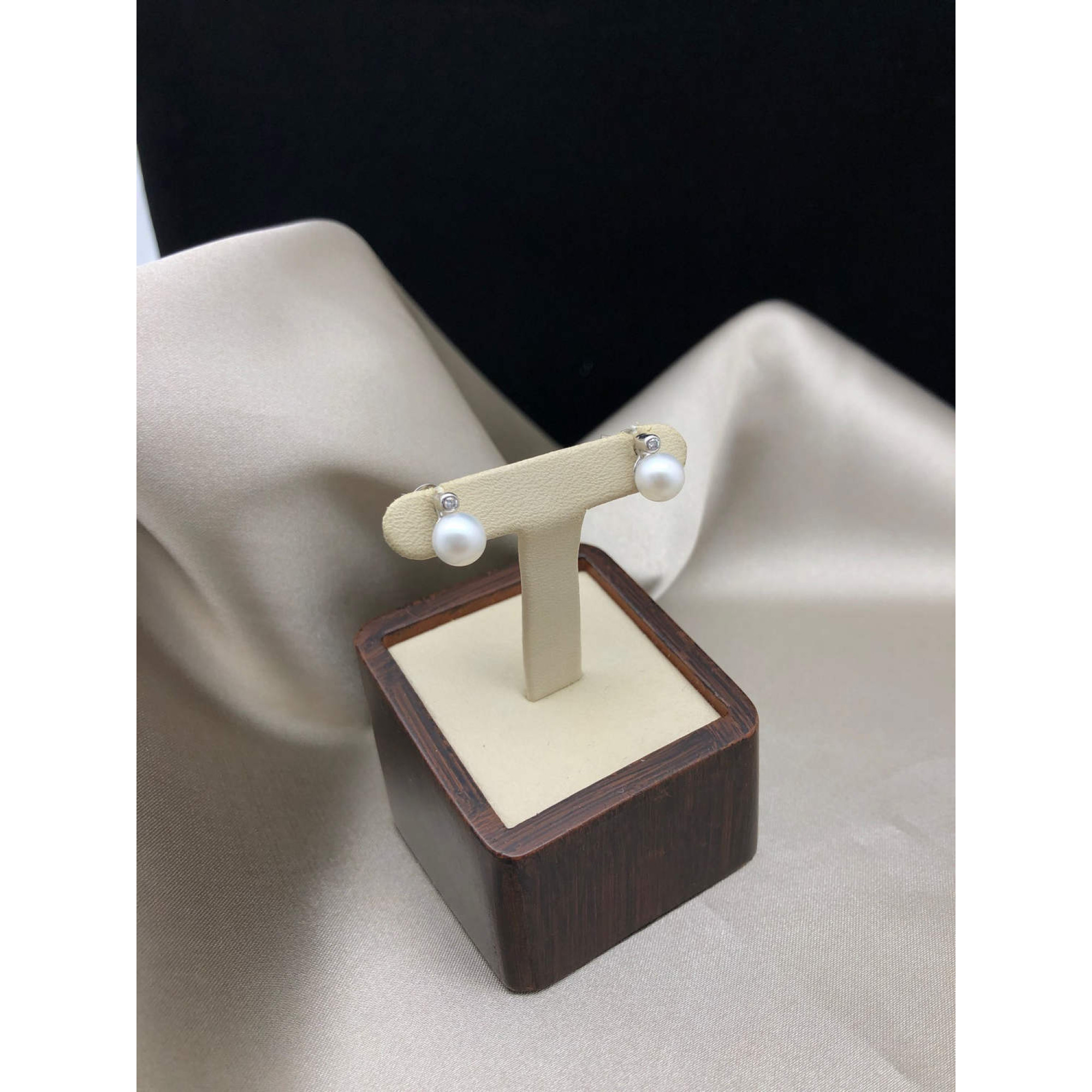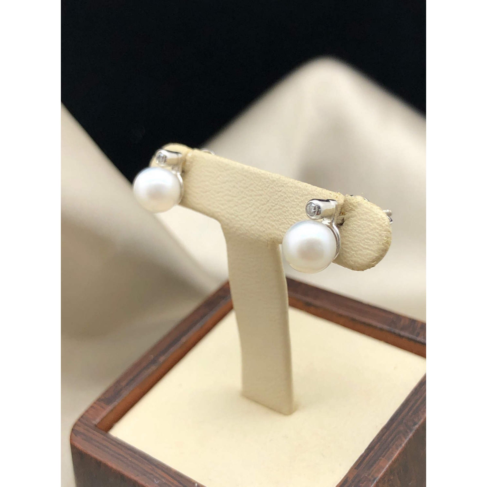 Пусеты с бриллиантами в белом золоте с жемчугом и бриллиантом из белого золота 585 пробы, вставки бриллиантами весом 0,04ct карата. Вес изделия 1,81 г,