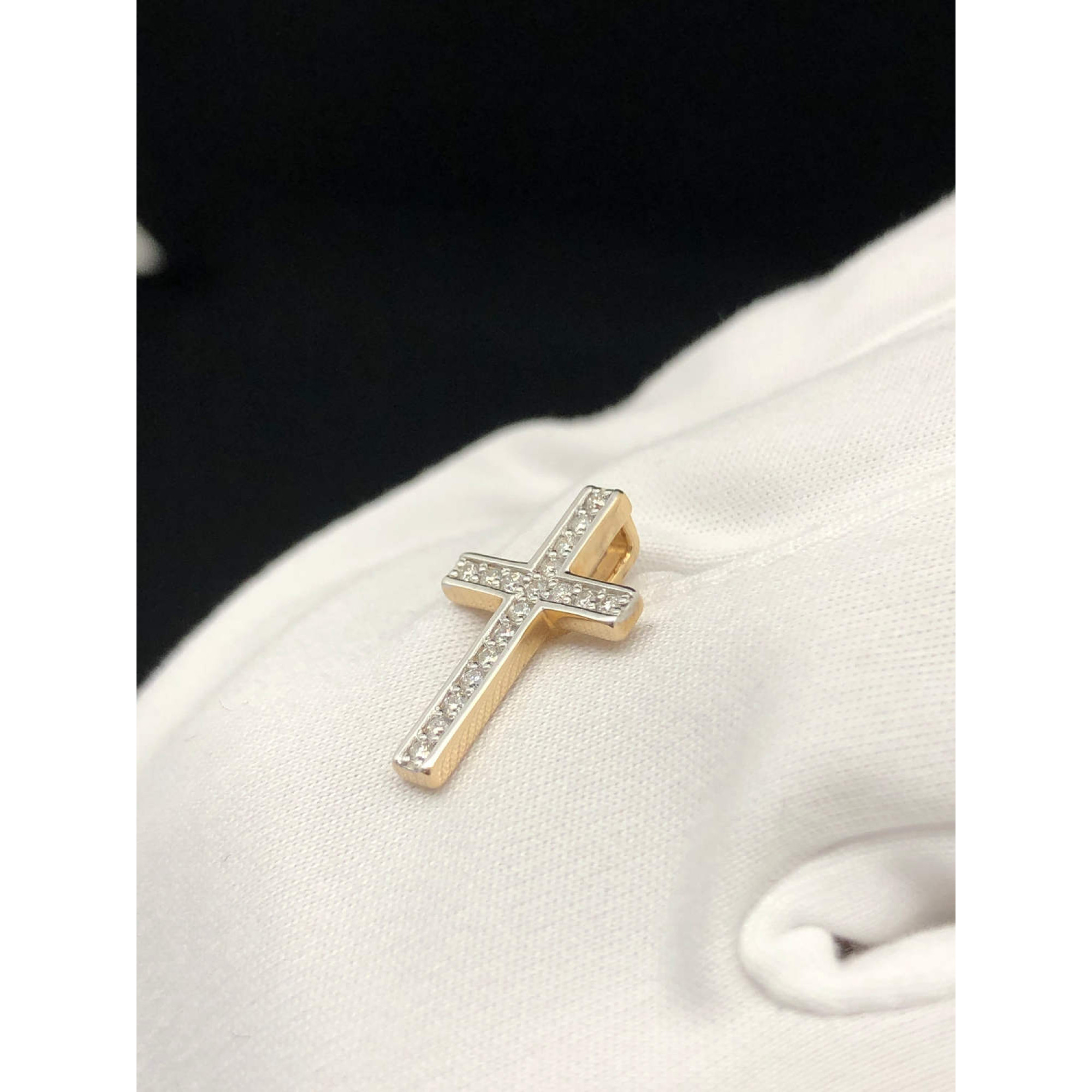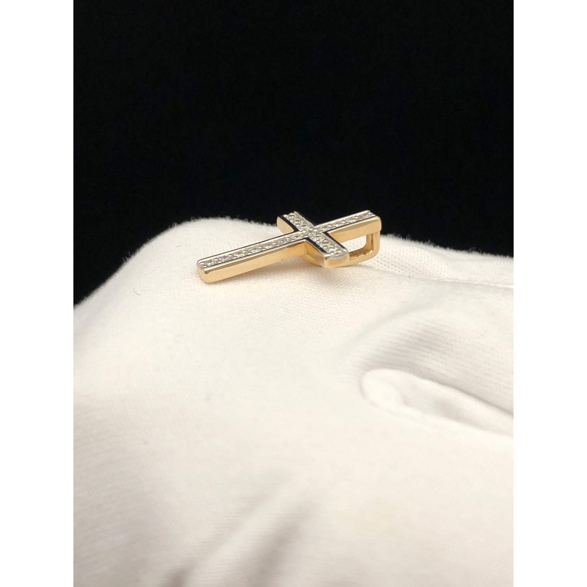 Золотая подвеска крест с бриллиантами из красного, белого золота 585 пробы, вставки бриллиантами весом 0,133ct карата. Вес изделия 1,03 г,