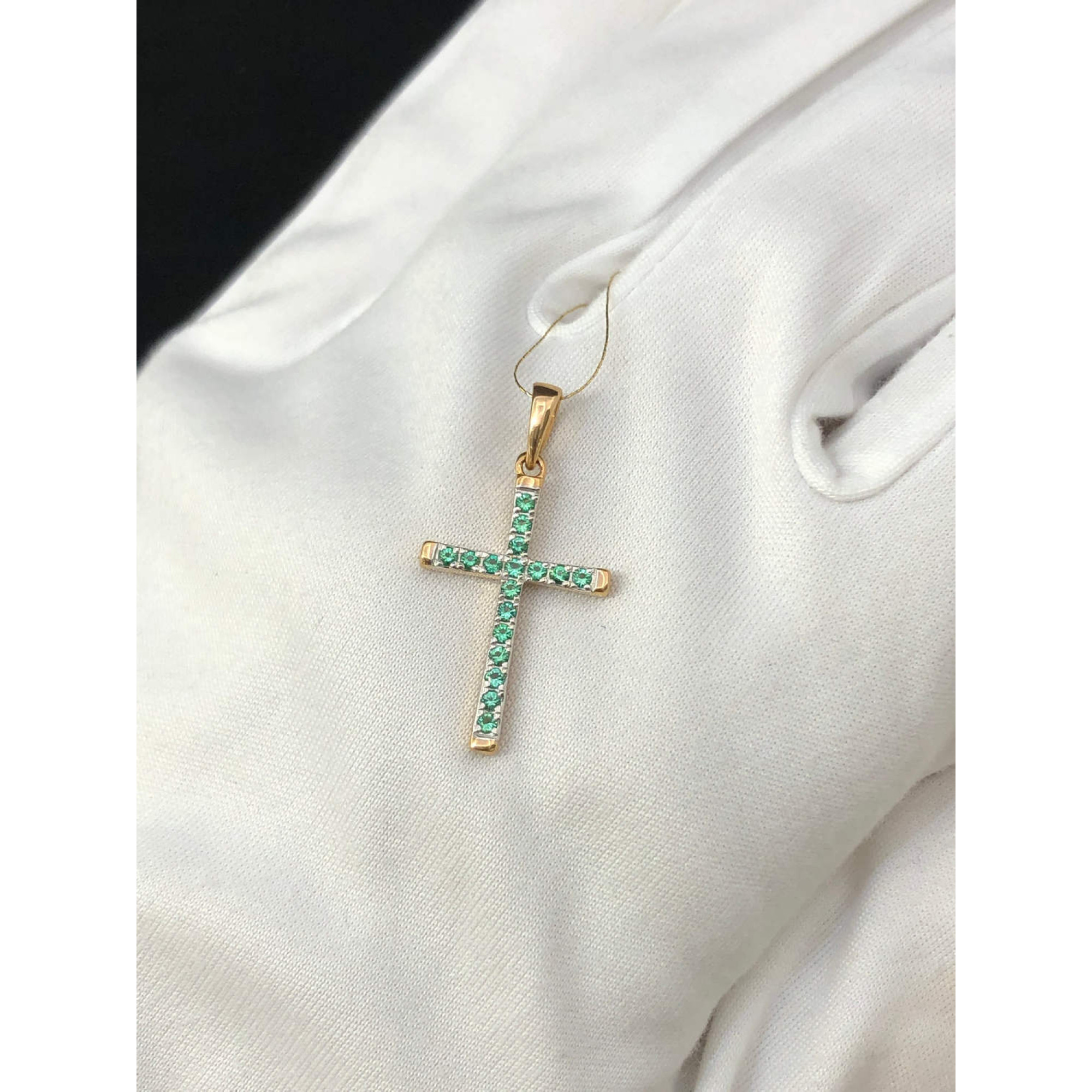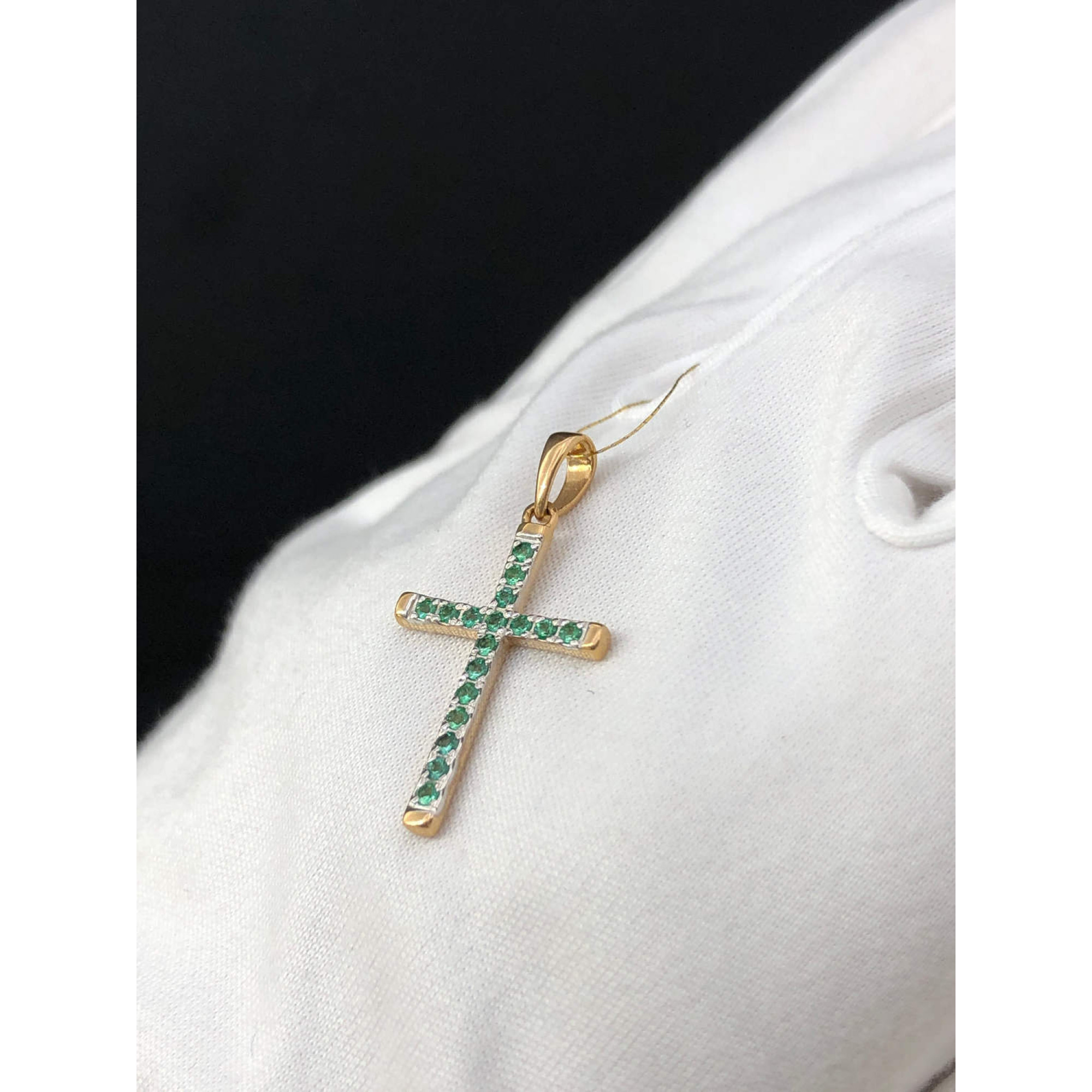 Описание Золотая подвеска крест с Изумрудом 1/56 189