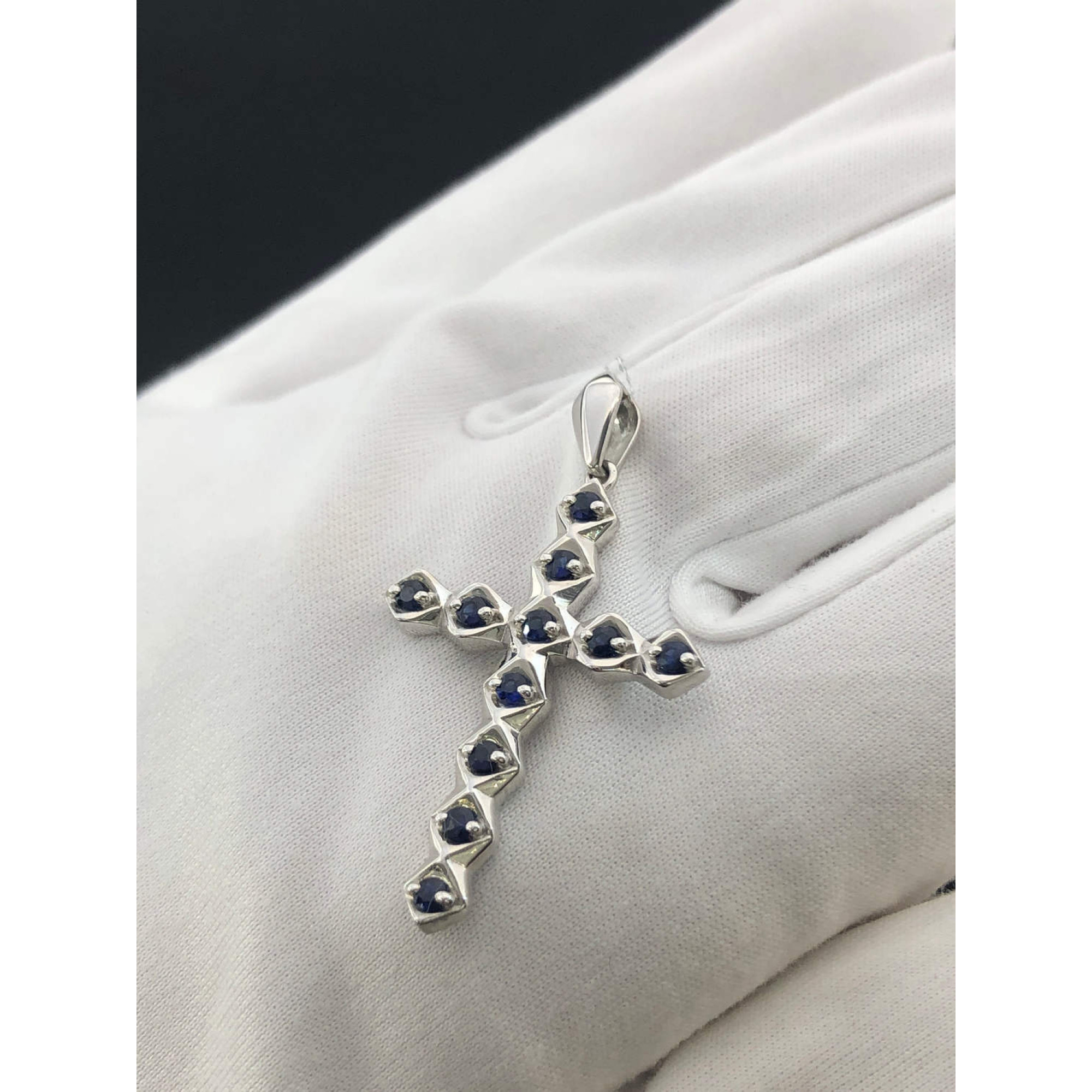 Подвеска крест из белого золота с сапфиром из белого золота 585 пробы, вставки сапфир. Вес изделия 2,88 г,