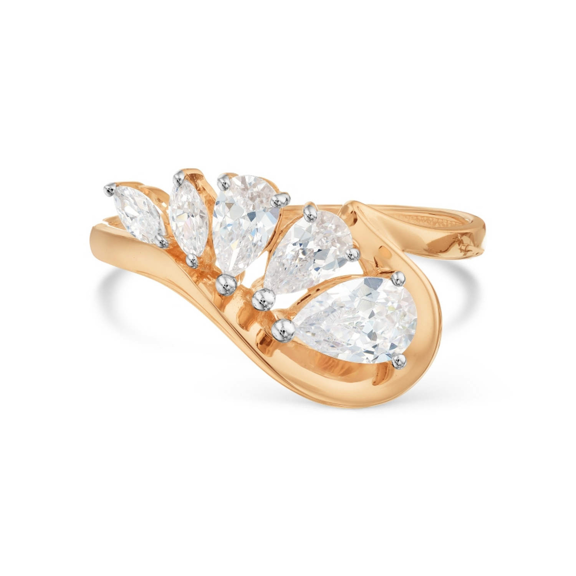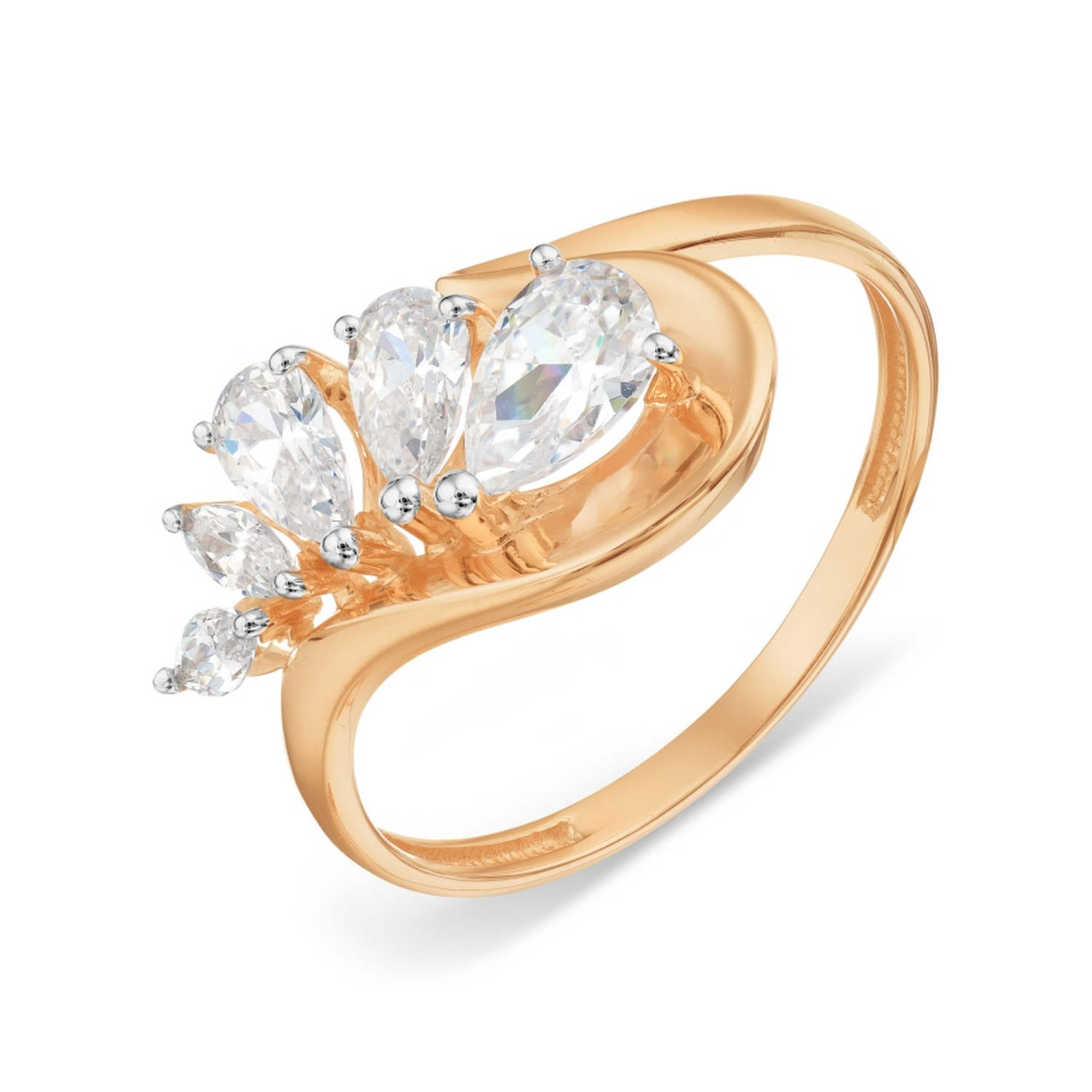 Золотое кольцо с фианитами: 16.0. Элегантное кольцо из красного золота 585 пробы. Вес изделия 2,01 г, размер 17,5