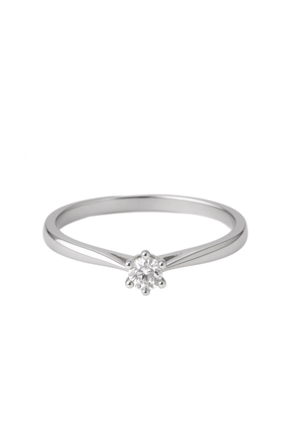 Это утончённое кольцо из белого золота с бриллиантом 0.17 Ct — идеальный выбор для предложения руки и сердца или изысканного подарка. Благодаря изящному дизайну и шестикрапановому креплению, камень надёжно зафиксирован и максимально открыт для света, что придаёт ему сияние. Лаконичный стиль делает это украшение универсальным и современным.