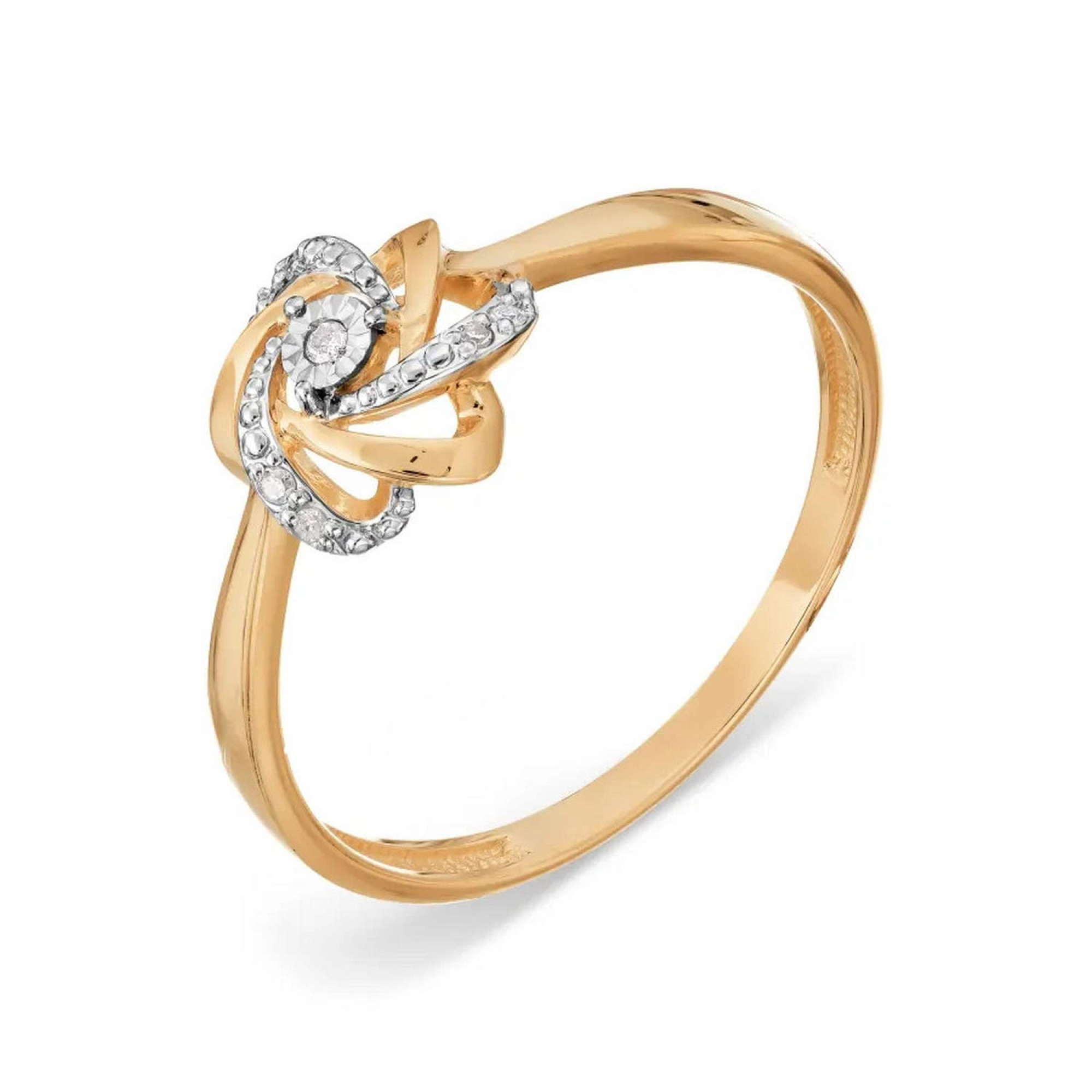 Кольцо c бриллиантами. Элегантное кольцо из розового, белого золота 585 пробы, вставки бриллианты W-Si 0.023ct. Вес изделия 1,38 г, размер 17.0