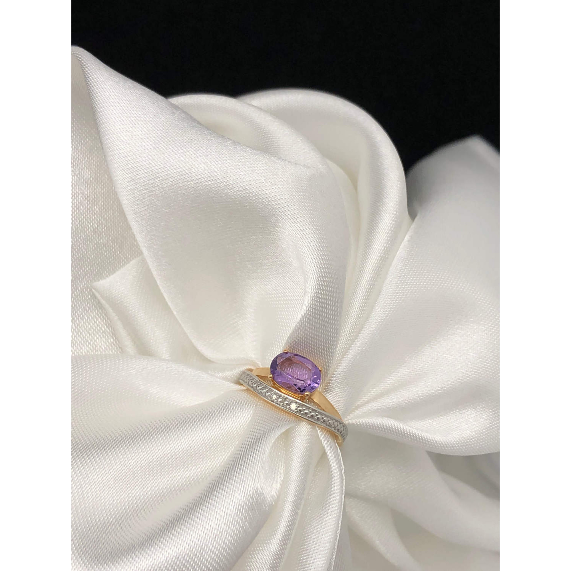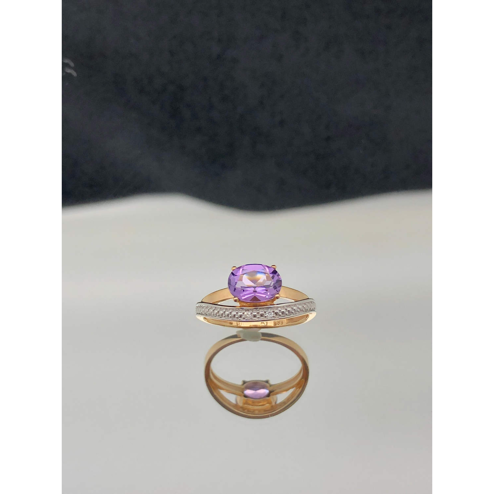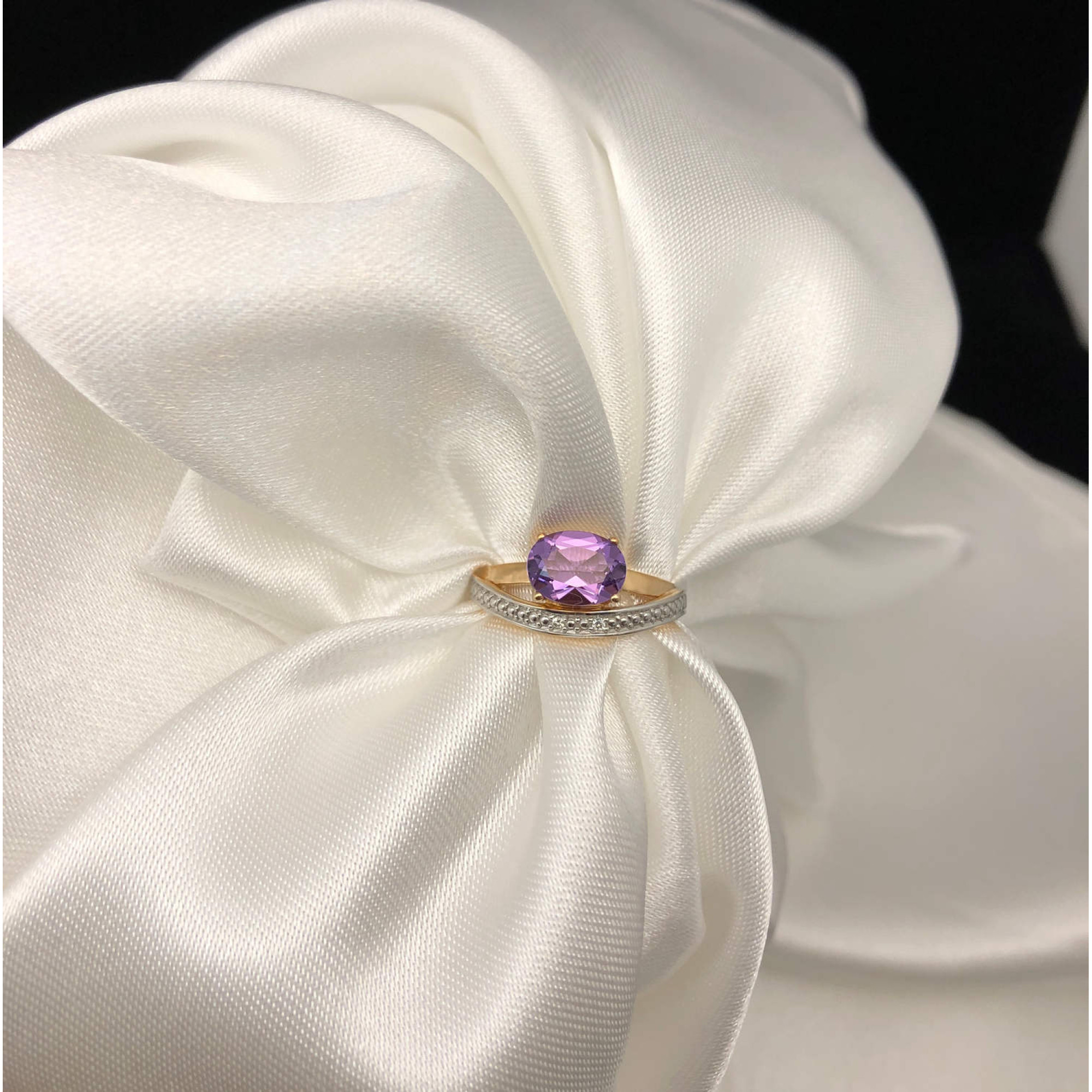 Kuldsõrmus ametüstikivi ja briljantidega 17.0. Elegantne sõrmus punasest ja valgest kullast 585, ametüst vahetükid, teemant Si 0,10ct. Toote kaal 2,12 g, suurus 17,0